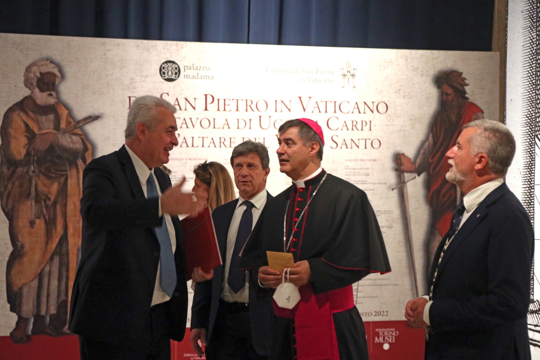 La Fondazione Torino Musei in collaborazione con la Fabbrica di San Pietro in Vaticano e con il patrocinio dell’Arcidiocesi di Torino, dal 16 giugno al 29 agosto 2022, presenta nella Corte Medievale di Palazzo Madama La tavola di Ugo da Carpi per l’altare del Volto Santo nella Basilica Vaticana (1524-1525). L’opera viene esposta al vasto pubblico grazie al sostegno di Reale Mutua e al contributo tecnico di Targetti Sankey Spa attraverso tecnologie illuminotecniche ad accensione diversificata per una narrazione visiva abbinata. Nel prestigioso spazio espositivo di Palazzo Madama, i visitatori potranno ammirare la pala d’altare di Ugo da Carpi con la Veronica che dispiega il velo del Volto Santo tra gli Apostoli Pietro e Paolo – un’opera di straordinaria importanza per arte e fede. Si tratta di una tavola “fatta senza pennello”, come è scritto dall’autore accanto alla firma e come riferisce Giorgio Vasari che la vide in San Pietro insieme a Michelangelo. Quella di Ugo da Carpi “intagliatore” fu una sperimentazione audace, ingegnosa e senza precedenti che nessuno ebbe in seguito l’ardire di ripetere; un’opera unica nel suo genere perché eseguita non con l’arte della pittura, ma con la tecnica della stampa a matrici sovrapposte. La tavola viene esposta al pubblico per condividere, oltre un’opera di formidabile interesse tecnico e artistico, i risultati di uno studio articolato e complesso, che, grazie al lavoro di figure professionali di altissimo profilo e a scrupolose ricerche, hanno permesso di svelare la storia e la tecnica d’esecuzione dell’opera che si appresta a compiere cinquecento anni di età. Una vita compresa tra due Giubilei: quello del 1525 durante il pontificato di Clemente VII e l’ormai prossimo Anno Santo del 2025.