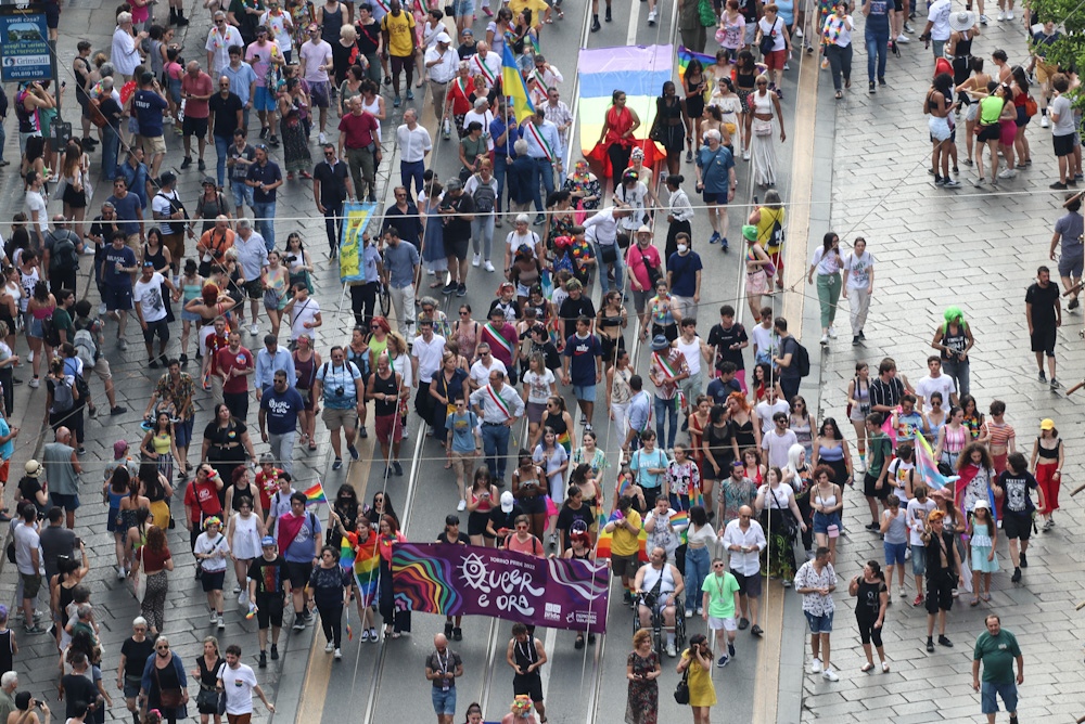 In testa al lunghissimo corteo le associazioni del Coordinamento Torino Pride, la direttrice del Lovers Film Festival, Vladimir Luxuria e le istituzioni con il sindaco di Torino Stefano Lo Russo. Tra gli altri carri presenti, quello delle associazioni delle Famiglie arcobaleno, Agendo, Arcigay, Maurice e i sindacati. Per la prima volta ha sfilato anche il carro de “La Stampa” diretta da Massimo Giannini che ha affermato: «I diritti si sommano, non si elidono».