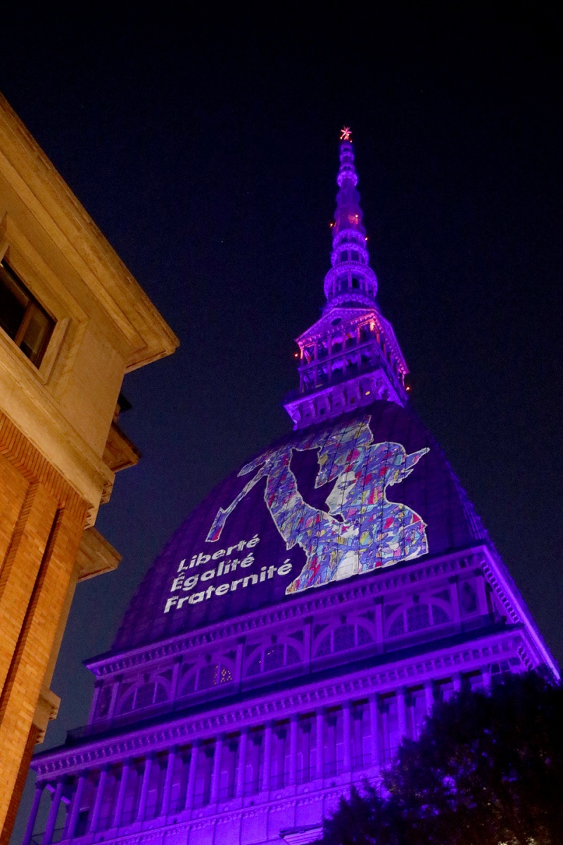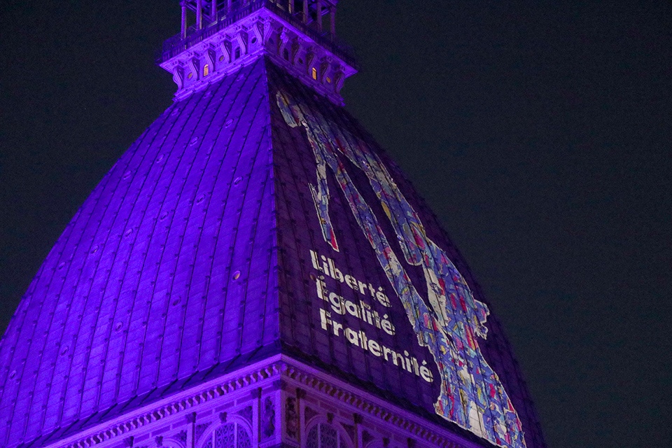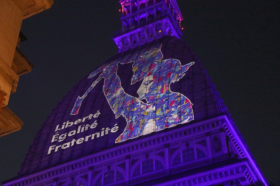 Una proiezione speciale sulla Mole Antonelliana per celebrare l’evento più importante per la Repubblica francese, la presa della Bastiglia il 14 luglio 1789 e la Festa della Federazione, esattamente un anno dopo nel 1790, che la commemora e celebra l’unione della Nazione: giovedì 14 luglio, alle ore 21, sul monumento simbolo del capoluogo piemontese apparirà un’immagine elaborata dall’artista JonOne e intitolata Liberté, Egalité, Fraternité (2015, credito: Bruno Brounch).