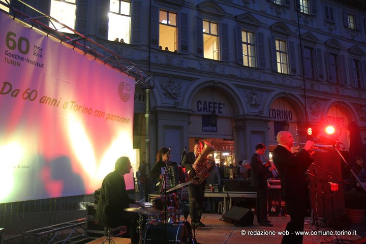 La festa in piazza si è aperta con il lancio di 600 palloncini in piazza e a seguire un concerto della band berlinese Di grine Kuzine con momenti di cucina di strada con birra e specialità tedesche. Per l’occasione all’interno dell’Istituto sono state inaugurate due mostre fotografiche: 1954-2014. Eine Zeitreise [Un viaggio nel tempo] e Il mio angolo di Germania a Torino.. In quegli anni la nostra città, più di altri capoluoghi italiani, vantava un forte legame con la lingua e la cultura tedesca. Tra i compiti principali del Goethe- Institut c’era il superamento della diffidenza nei confronti dei tedeschi. Dalla fondazione dell’istituto sono passati 60 anni; le ferite si sono ricucite, il Goethe- Institut ha cambiato sede, ha visto avvicendarsi direttori e ha vissuto anche momenti non facili. Oggi l’Istituto vanta una forte richiesta di corsi di lingua, ha circa 1500 iscritti l’anno e altrettante richieste di certificazioni.