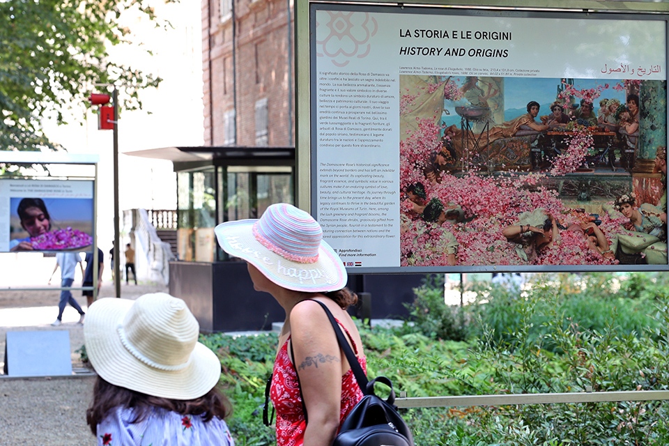 Dal 4 al 1° ottobre 2023, i Giardini dei Musei Reali accolgono La Rosa di Damasco. Dalla Siria a Torino, un progetto culturale ideato e condotto dai Musei Reali con il Syria Trust for Development e la Fondazione Santagata per l’Economia della Cultura, teso a promuovere il ruolo e l’importanza del secolare patrimonio culturale siriano nel bacino del Mediterraneo attraverso la Rosa di Damasco, uno dei prodotti più noti e iconici di quella regione.
