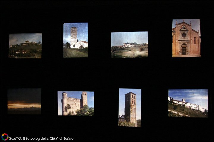Nella sezione Tracce della memoria i positivi su carta all’albumina di grande formato, montati sui cartoncini originali con note autografe, sono esposti in suggestive teche illuminate dall’interno e proposti per nuclei tematici: castelli, residenze sabaude, case antiche con dettagli architettonici, chiese e abbazie. Quest’ultimo tema introduce alla sezione Immagini del sacro: le celebri fotografie della Sindone sono accostate ad icone come il Mandylion di Edessa e altri dipinti o oggetti sacri connessi al tema cristologico, fotografati da Pia per la prima volta. Nell’ultima sala, dedicata a Il colore, è esposta un’eccezionale raccolta di autocromie su vetro. Secondo Pia fu uno dei primi fotografi italiani a realizzare immagini a colori, utilizzando le lastre Lumière fin dalla loro comparsa sul mercato agli inizi del Novecento.