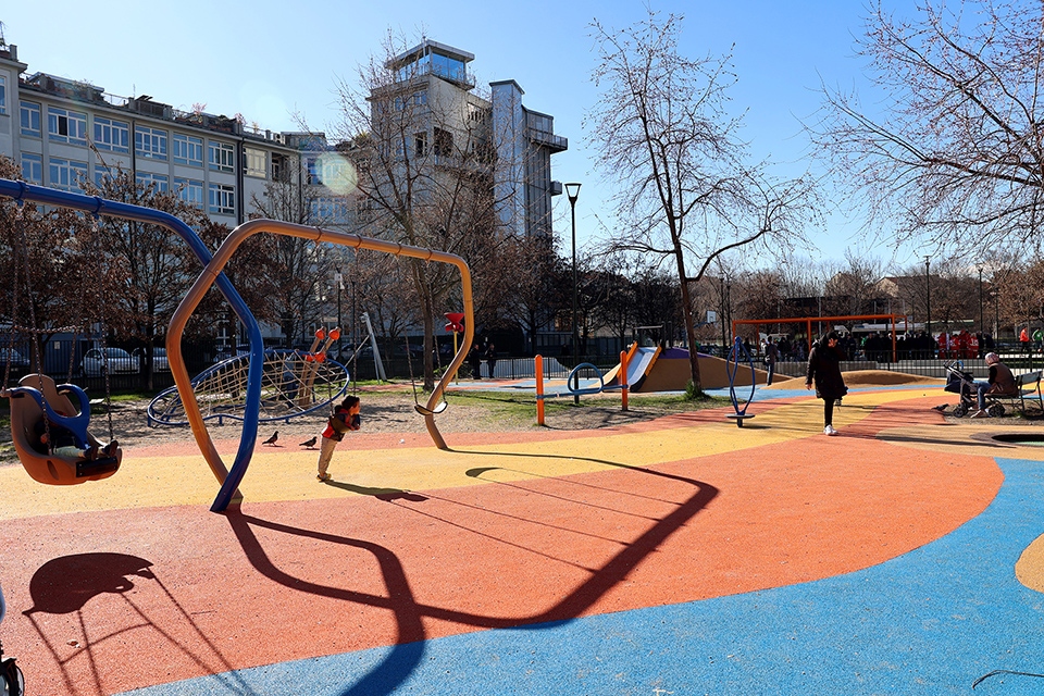 Sono state aumentate le superfici permeabili per un miglior drenaggio del terreno e realizzati nuovi punti di sosta e di aggregazione, con la posa di nuovi elementi di arredo urbano – sedute, tavoli con panche, portabiciclette e rastrelliere per monopattini, fontanelle e cestini portarifiuti – per migliorare la fruizione di un luogo di svago e socializzazione che, grazie ai lavori, si propone di diventare sempre di più un punto di riferimento per tutti gli abitanti del quartiere.
