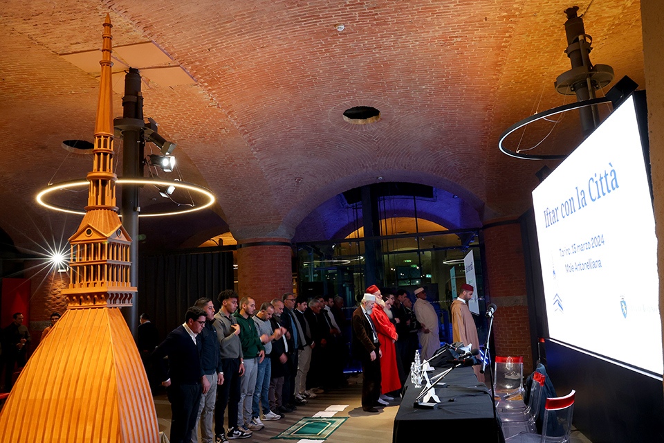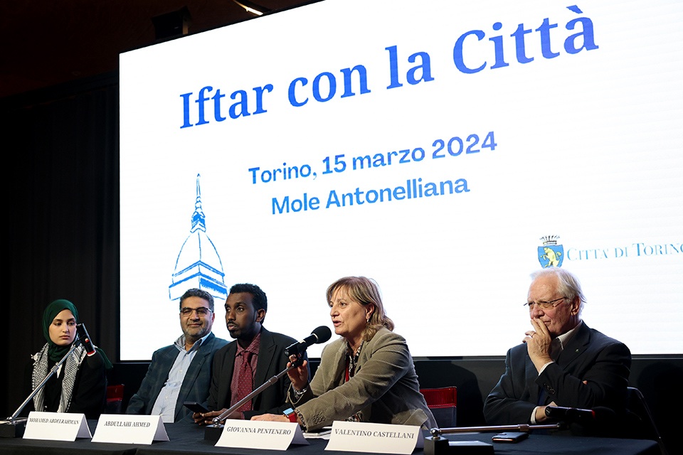 Per quarantamila torinesi, questi sono giorni speciali. In questo periodo, in tutto il mondo le persone di religione musulmana celebrano il Ramadan, un periodo di preghiera e purificazione che costituisce uno dei pilastri della religione monoteista fondata dal profeta Mohamed , Maometto, nel VII secolo. Anche sotto la Mole, quindi, i nostri concittadini e concittadine di fede musulmana vivono questo periodo di intensa spiritualità. Sono di cittadinanza (o di origine: in migliaia sono infatti cittadini e cittadine italiani a tutti gli effetti) marocchina, egiziana, senegalese, tunisina, bengalese e altre ancora: a tutti loro, la Città si è idealmente stretta nella cerimonia dell’Iftar, la rottura del digiuno diurno che avviene al tramonto. Presso la sala conferenze del Museo Nazionale del Cinema, si sono riuniti numerosi esponenti delle moschee torinesi e di varie associazioni di matrice islamica. A rappresentarle al tavolo degli oratori, la giovane Halima Rakiki e Mohamed Abdelrahman. Con loro, oltre al presidente del Comitato Interfedi, Valentino Castellani (sindaco di Torino fra il 1993 e il 2001), l’assessora Gianna Pentenero, la presidente del Consiglio comunale Maria Grazia Grippo e il presidente della Commissione contro intolleranza e razzismo Abdullahi Ahmed Abdullahi. In attesa del tramonto, momento di rottura del severo digiuno (il Ramadan prevede che nelle ore diurne non si assumano cibo e bevande), dal Museo Nazionale del Cinema è partito un corale messaggio di unità nella diversità, di pace e fratellanza. Per vivere insieme, è stato sottolineato nel corso dell’incontro, occorre conoscersi, confrontarsi. Per costruire insieme questo Paese, con rispetto per le differenze e con i valori della Costituzione Repubblicana a tutelare – e vincolare – tutte le componenti della mostra comunità.