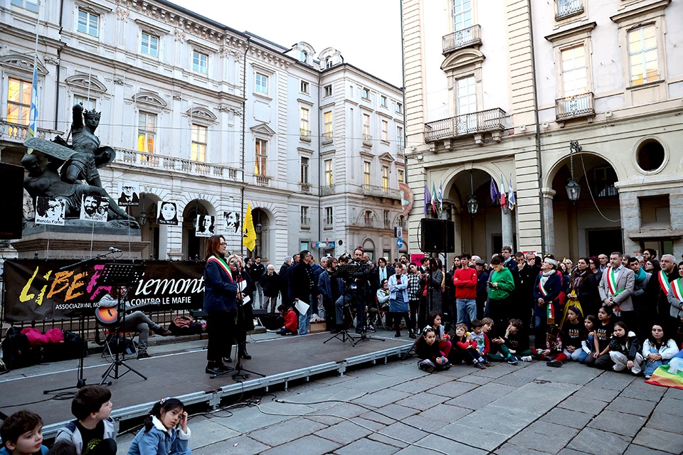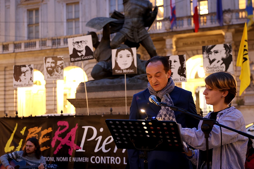 Per l’edizione 2024 della Giornata della memoria e dell’impegno in ricordo delle vittime innocenti delle mafie, questa sera davanti a Palazzo Civico sono state ricordate le vittime innocenti della criminalità organizzata. I loro 1081 nomi sono stati scanditi nel corso della suggestiva serata, al lume delle torce. In tanti e tante si sono prestati alla lettura di parti del lungo elenco, tra loro rappresentanti delle forze dell’ordine, dei sindacati e associazioni, delle istituzioni locali – come il presidente della Regione Alberto Cirio – e della Città di Torino, come la vicesindaca Michela Favaro, la presidente del Consiglio comunale Maria Grazia Grippo e vari consiglieri e consigliere della Sala Rossa.