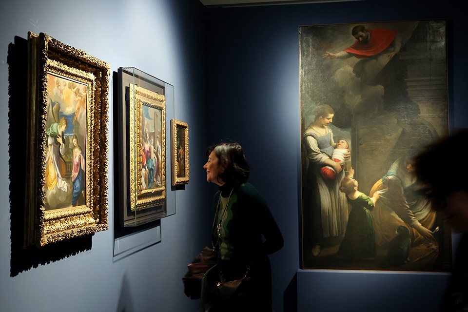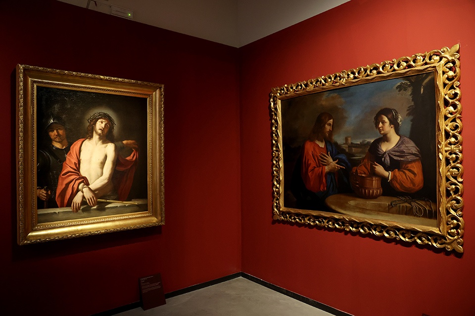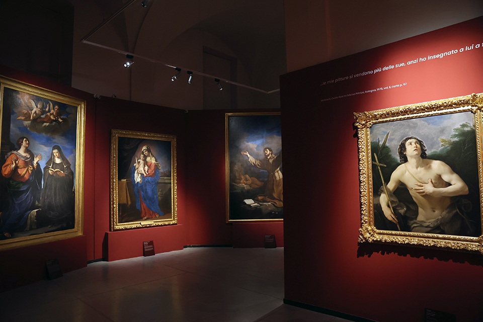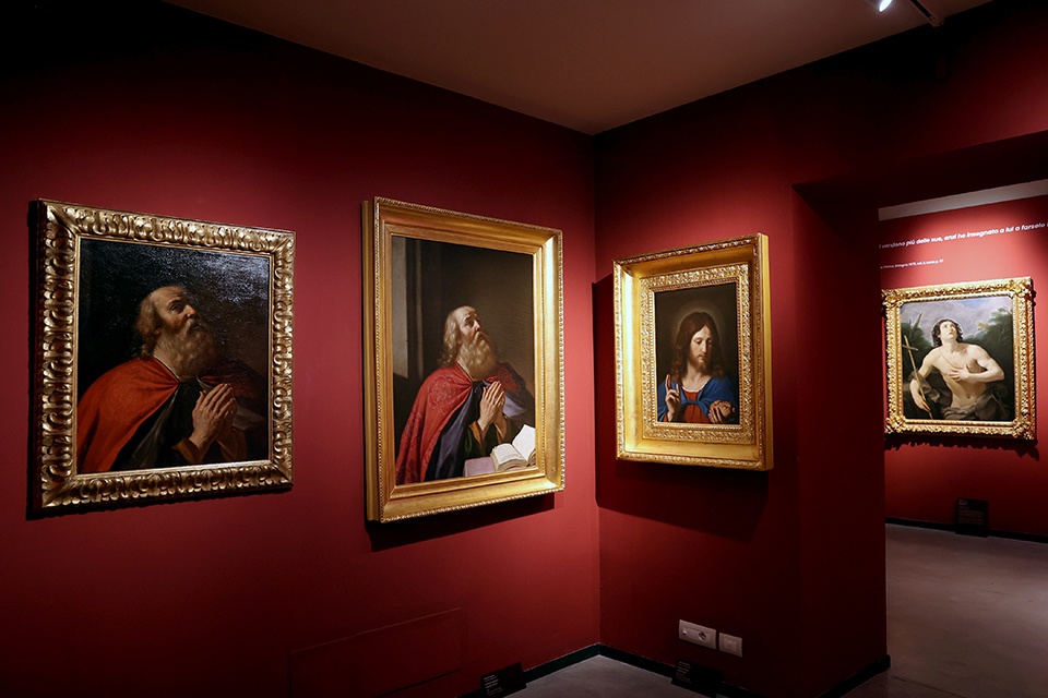 A rendere evidente, invece, la prassi della riproposizione dei modelli e il ricorso a un repertorio di invenzioni, la mostra offre alcuni accostamenti di grande efficacia: dalle due versioni di Dio Padre della Galleria Sabauda e della Pinacoteca Nazionale di Bologna (entrambe del 1646) poste accanto all’Immacolata Concezione dalla Pinacoteca Civica di Ancona (1656) – con in cielo un’analoga figura dell’Eterno – al suggestivo confronto tra il San Matteo e l’angelo, capolavoro dei Musei Capitolini (1622), e il coevo San Pietro liberato da un angelo, uno dei prestigiosi prestiti del Museo del Prado.