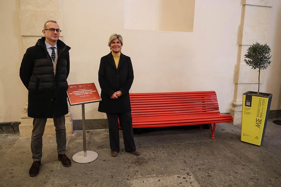 Al termine dell’incontro, negli spazi di ingresso al Museo Egizio, è stata inaugurata una panchina rossa, luogo simbolo della riflessione contro la violenza di genere. Un’altra panchina rossa è stata posizionata in Galleria San Federico, grazie all’iniziativa di Unipol, come ulteriore simbolo visibile in un luogo centrale della città per sensibilizzare la cittadinanza. E sempre questa mattina un altro simbolo del 25 novembre ha trovato collocazione in piazza Palazzo di Città, proprio di fronte a Palazzo Civico: decine di paia di scarpe rosse sono state posizionate sulla piazza da Taxi Torino, in collaborazione con il gruppo Augusta Taurinorum, a memoria delle troppe donne vittime di violenza mentre prosegue anche l’adesione di numerosi spazi pubblici e privati alla campagna “Posto Occupato”, con il posizionamento in luoghi ad alta frequentazione di pubblico di un cartello su una sedia per ricordare l’assenza di una donna vittima di femminicidio. Un “Posto Occupato” sarà previsto per ogni sala di proiezione del Torino Film Festival, attualmente in corso.
