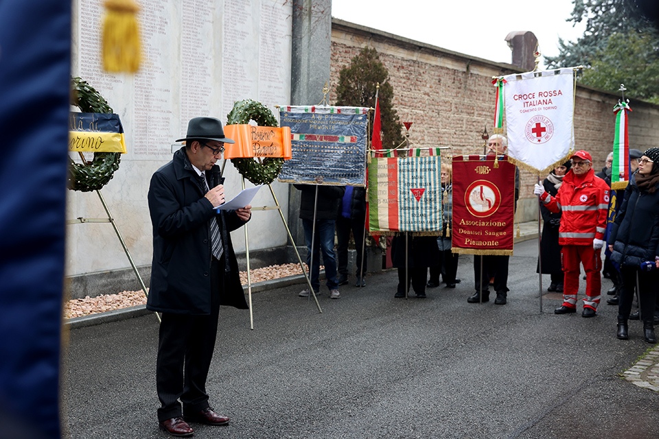 La giornata si è aperta alle ore 9:30 al Cimitero Monumentale, con una commemorazione e un omaggio alle lapidi dei Caduti, in ricordo dello sterminio del popolo ebraico, degli internati militari e di tutti i deportati nei campi di concentramento nazisti. Per la Città di Torino era presente l’assessora Chiara Foglietta.