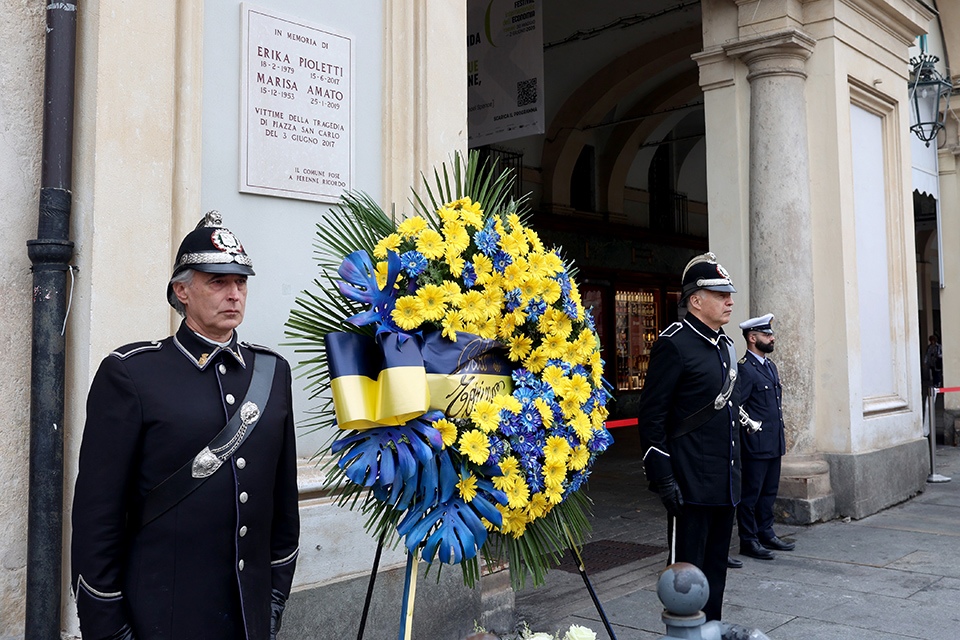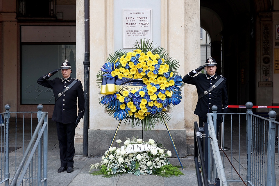 La cerimonia si è svolta davanti alla targa che ricorda le due vittime, dove i vigili urbani in alta uniforme hanno deposto una corona di fiori nei colori giallo e blu, simbolo della Città . Presente anche il sindaco Stefano Lo Russo, che ha voluto rendere omaggio a nome di tutta la comunità torinese.