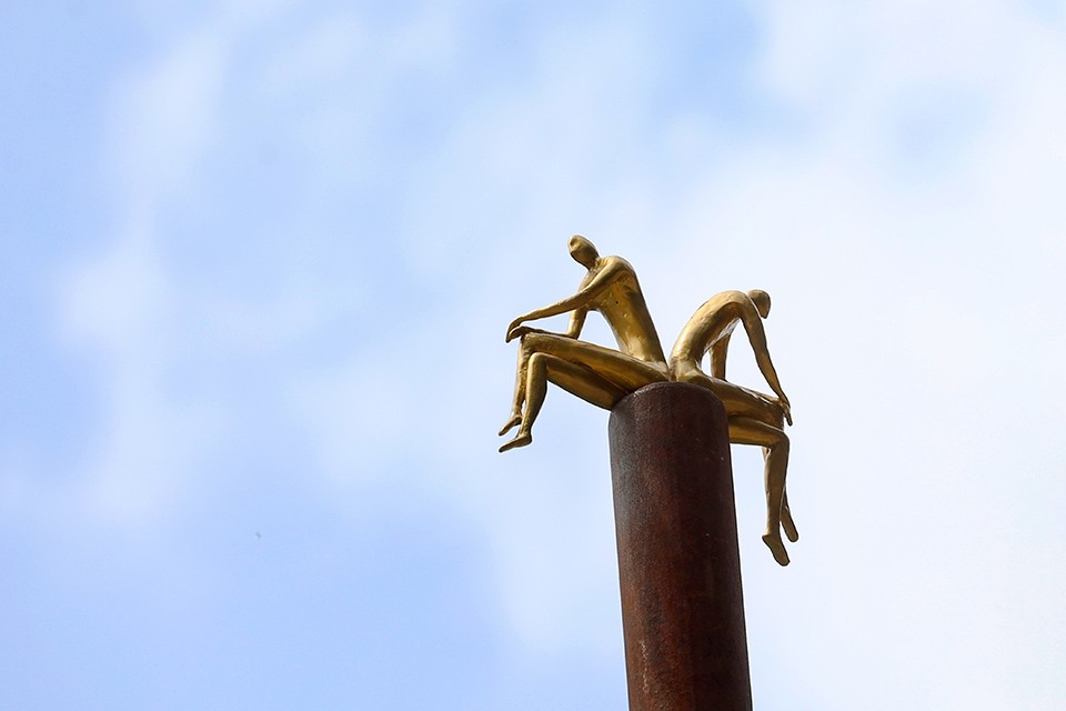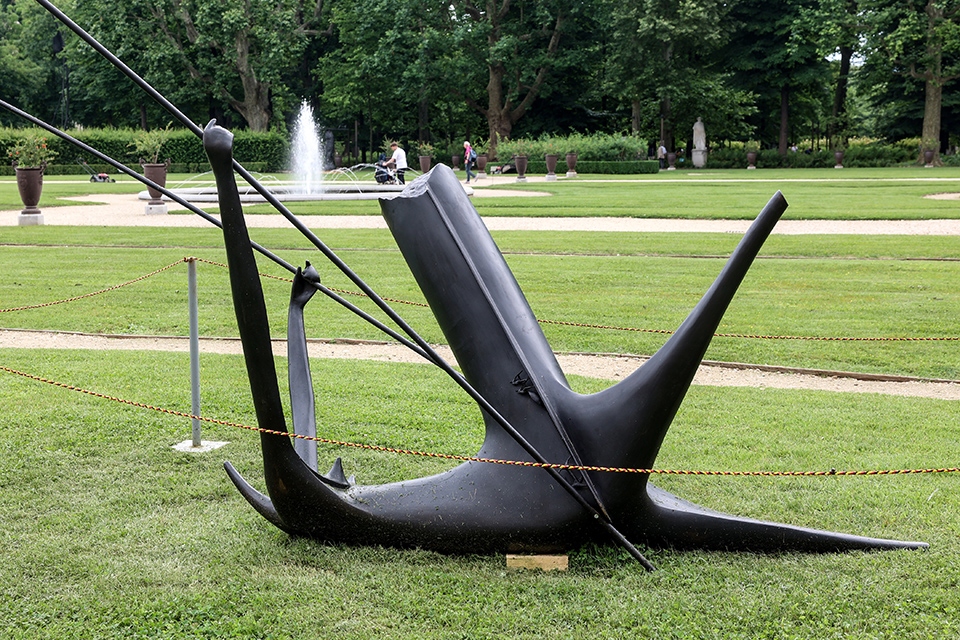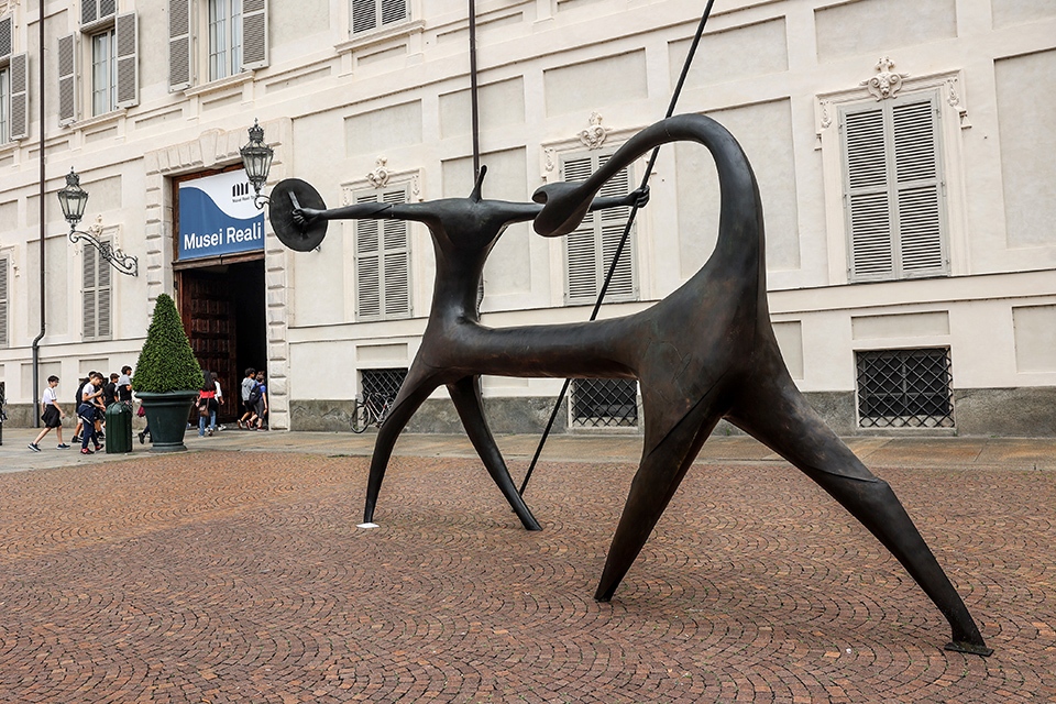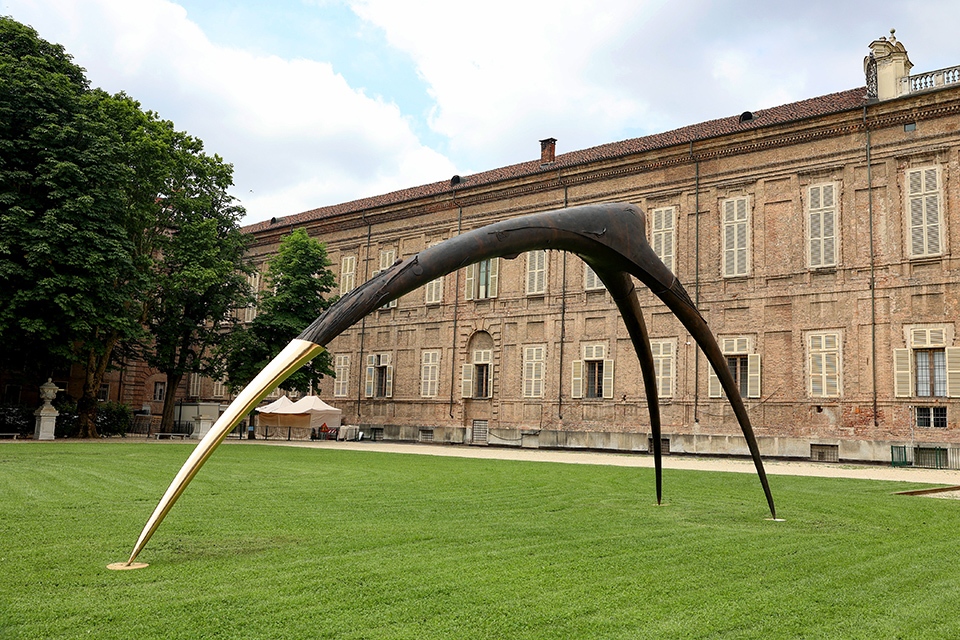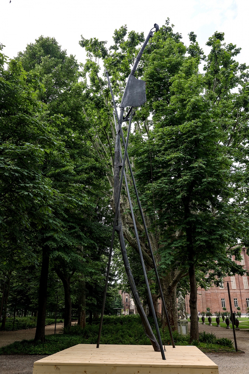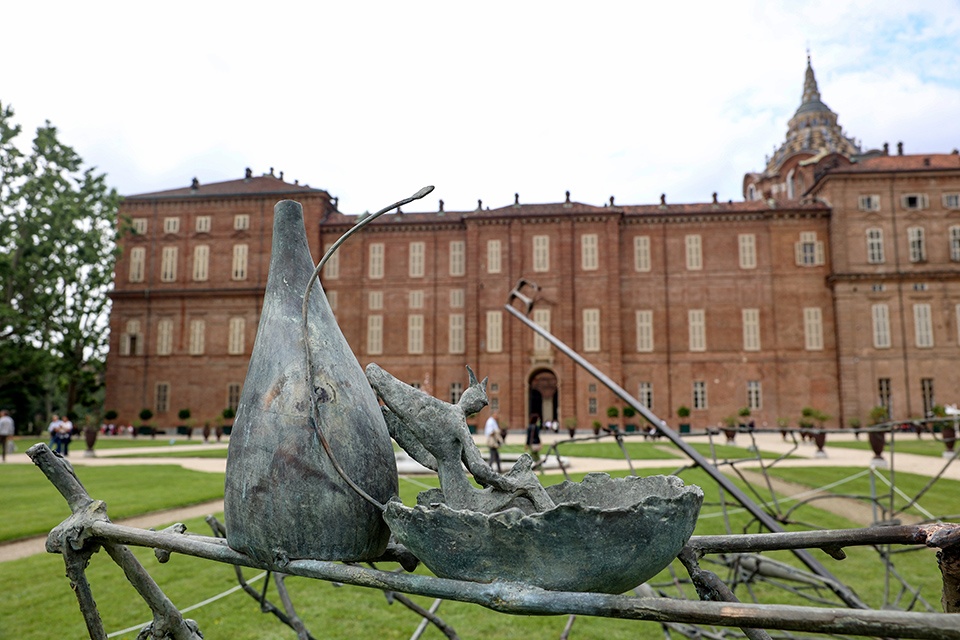 In mostra, 14 opere ambientali e scultoree – molte di grande formato – si confrontano con gli spazi storici dei Musei Reali. Nei Giardini Reali e nella Piazzetta Reale prendono forma creature mitologiche e simboliche: demoni alati che evocano l’iconografia medievale, centauri in duello, ermafroditi, funamboli, otri e alambicchi dal sapore fiammingo. Oggetti e figure che sembrano emergere da un tempo sospeso, in equilibrio tra il reale e l’immaginario.