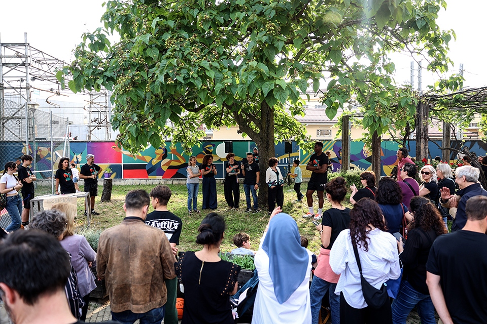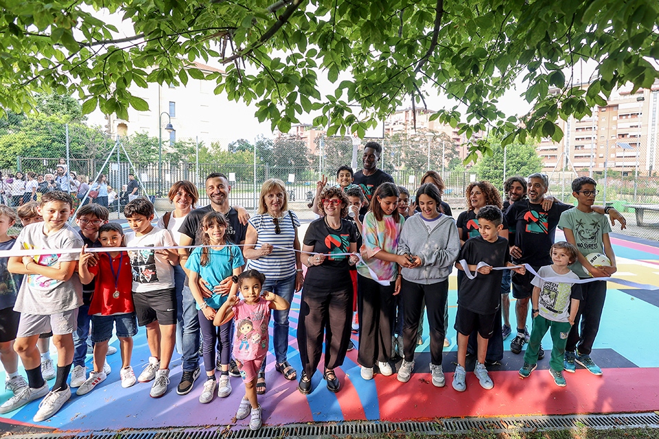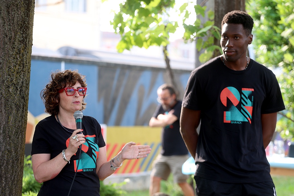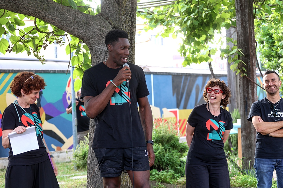 All’inaugurazione erano presenti anche Cristina Savio, presidente della Circoscrizione 1, Rita Cararo, presidente di Kallipolis APS, e il campione di basket Paul Biligha, in rappresentanza della Fondazione Jeanne D’Arc, partner del progetto.