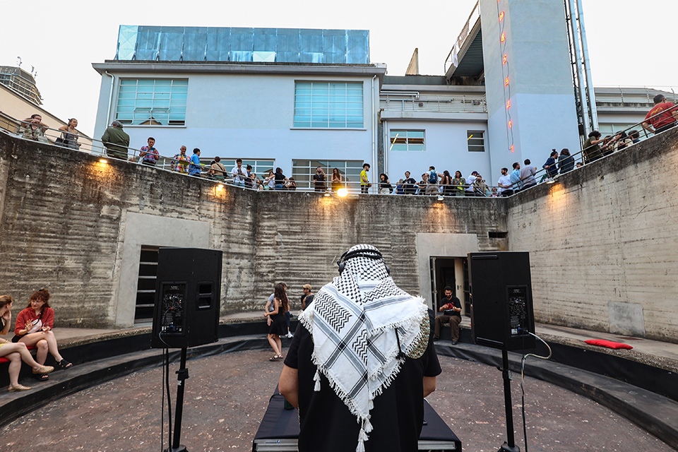 A concludere la serata dell’11 giugno, in occasione dei festeggiamenti per i 20 anni della Fondazione Merz, un DJ set speciale ha animato gli spazi del Parcheggio Lancia: protagonisti DJ Falafel (Gerusalemme) e Qكيو / Qusay Awad (Damasco/Berlino), in un incontro tra sonorità mediorientali, ritmi tradizionali e bass music. Un viaggio musicale attraverso identità, diaspora e desiderio di libertà, dove il ballo diventa un gesto collettivo, un rito urbano di condivisione
