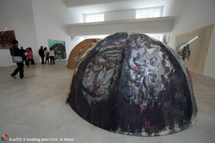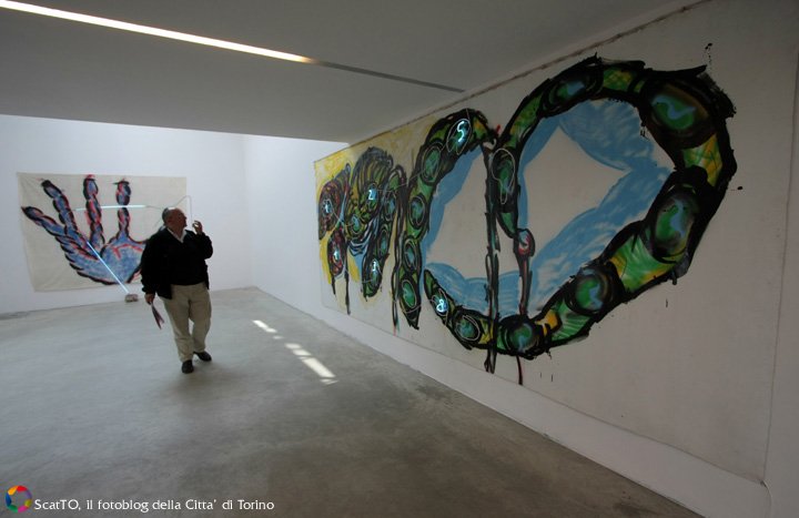 Gli strati di colore materico riversati sul quadro diventano essi stessi una seconda natura. L’allestimento è accompagnato – su scelta dei curatori – da poesie inglesi scritte sui muri. “A fare la pittura – ha spiegato Fuchs – non è la filosofia, ma la poesia, soprattutto quella inglese perché è la lingua con il vocabolario più ricco”. Tra i lavori in mostra anche due igloo dipinti, Casa del giardiniere e Igloo (Tenda di Gheddafi) e il video Lumaca di Gerry Schum.