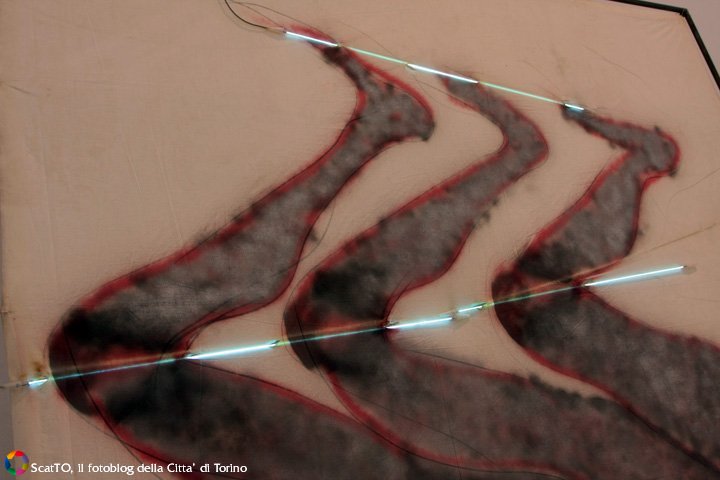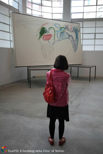 “Una volta vidi Mario Merz mentre creava alcuni dei grandi dipinti inclusi in questa mostra – ha raccontato ancora Fuchs al pubblico intento ad ascoltare i suoi ricordi.- Procedeva con un pennello zuppo di colore e qualche bomboletta di vernice su tele non intelaiate, leggere e sottili come lenzuola. Più che dipingere sembrava disegnare: linee allungate, curve, ondivaghe, che prendevano la forma di una qualche figura. Erano sagome ben delineate, potenti nel colore e nel disegno. Erano forme araldiche”.