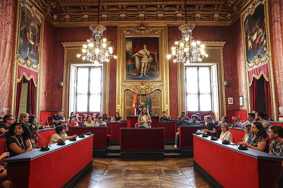 Una folta delegazione di circa 50 studenti provenienti da cinque paesi europei – Spagna, Francia, Belgio, Ungheria e Italia – che partecipano al progetto Shape, sono stati accolti questa mattina nella sala Rossa di Palazzo Civico dalla vicesindaca Michela Favaro.