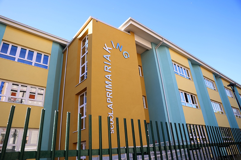 Costruita nel 1963 e chiusa nel 2014 per problemi strutturali, la scuola primaria King torna oggi a essere un punto di riferimento per il quartiere grazie a un intervento di oltre 6 milioni di euro (in parte finanziato dal Programma Triennale Nazionale 2018-2020 per l’edilizia scolastica).