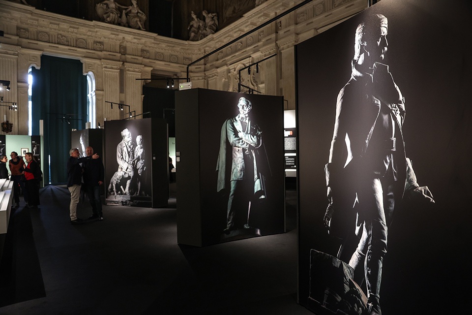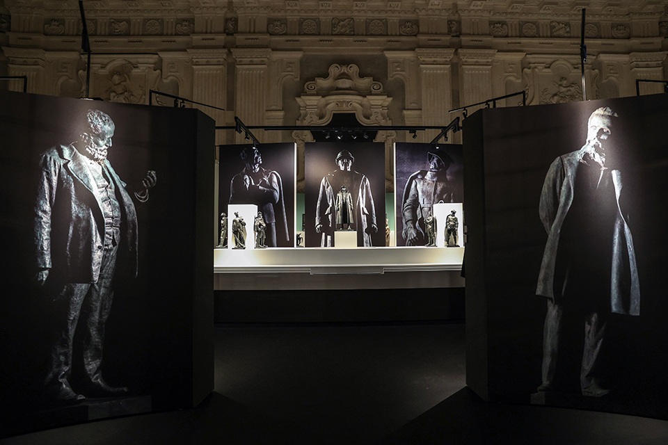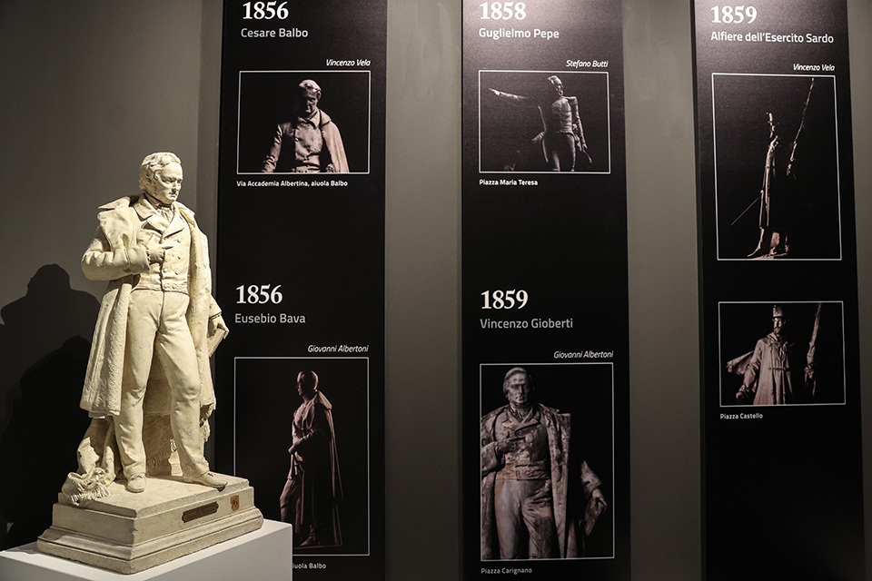 La mostra analizza un secolo di statuaria commemorativa a Torino, dal 1838 con il Monumento equestre a Emanuele Filiberto di Carlo Marochetti fino agli anni Trenta del Novecento. Attraverso oltre cinquanta gruppi scultorei emerge il volto simbolico della città : la capitale sabauda dei principi e dei condottieri, la città dei santi sociali come Giuseppe Cafasso e Giuseppe Benedetto Cottolengo, la protagonista del Risorgimento con figure come Massimo d’Azeglio, Garibaldi e Cavour, e la Torino laica e positivista che celebra scienza, impegno civile e imprenditoria.