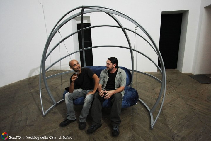Ospiti a Torino, allestiti nel palazzo di via San Francesco d’Assisi 14, alcuni pezzi appartenenti a questa serie, come la culla, un curioso sofà a dondolo sospeso ad un arco, un’idea che mette insieme il luogo del pensiero e quello dell’evasione. Stessa filosofia per il rifugio, un letto pensato come una cuccia dove ritrovare il senso di levità.