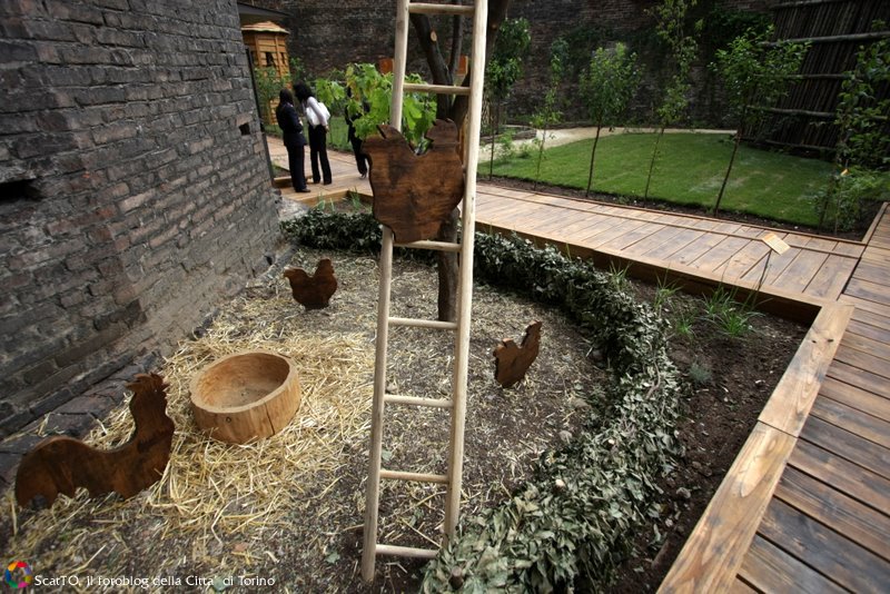 Sono state rispettate sia le tradizionali suddivisioni degli spazi in viridarium (una grande aiuola, dove si coltivavano alberi da frutto, circondata da una canaletta), orto e giardino del principe, sia gli arredi tradizionali (porcilaia, recinto delle galline, gabbia dei pappagalli).