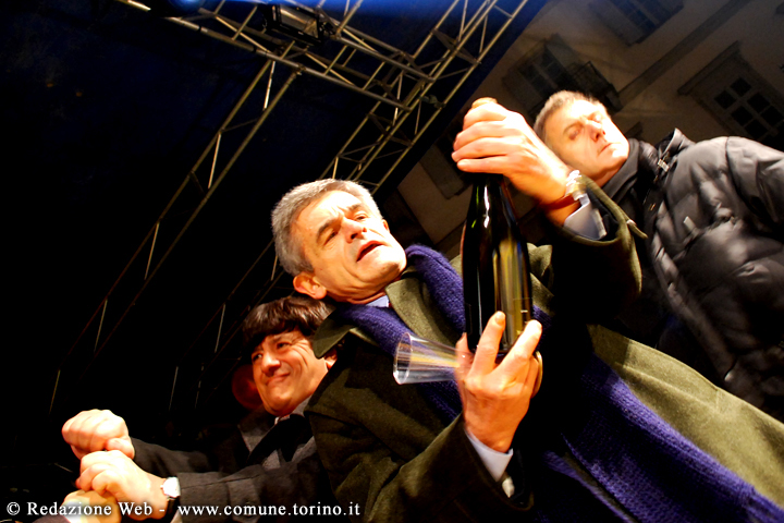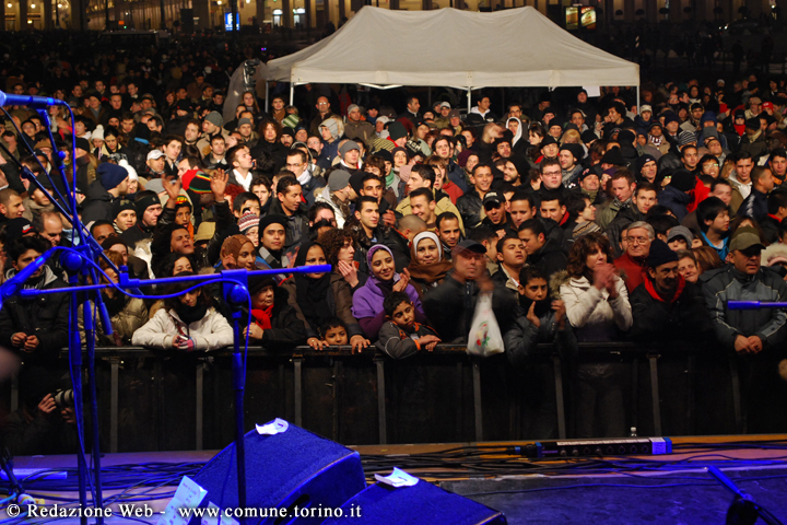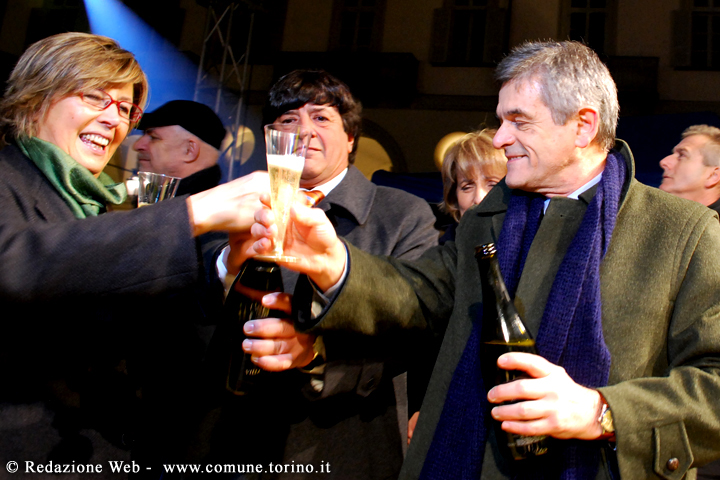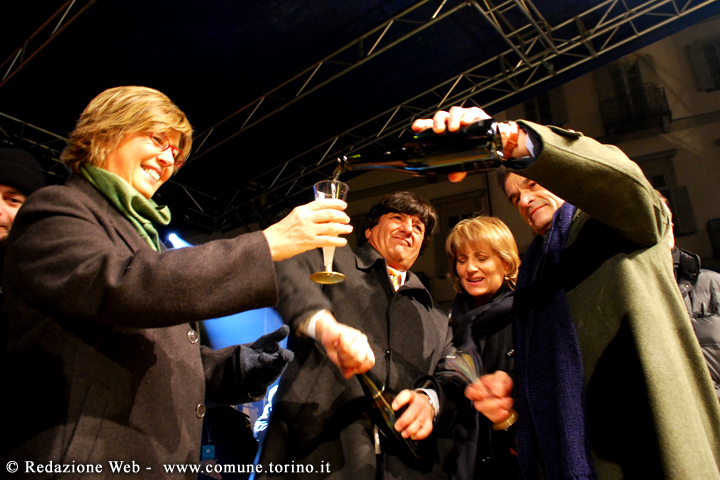 La festa di Capodanno in Piazza Vittorio dove Sergio Chiamparino, Sindaco di Torino, ha ricevuto il testimone dal sindaco di Rotterdam che è stata Capitale Europea dei Giovani nel 2009.