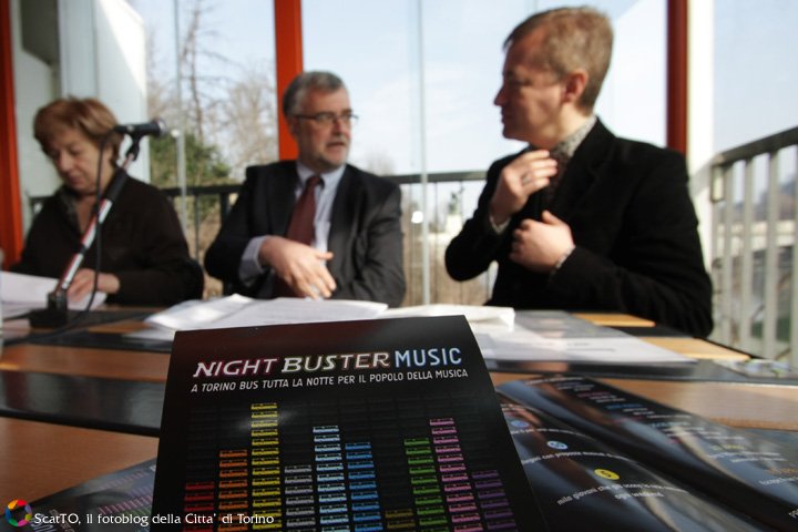 Nightbustermusic promuove il servizio nightbuster, nato nell’estate del 2008 per volontà della Città di Torino, dell’Agenzia per la Mobilità Metropolitana e di GTT, attivo tutti i venerdì e sabato, dopo mezzanotte, nei luoghi di maggior afflusso del popolo della notte.