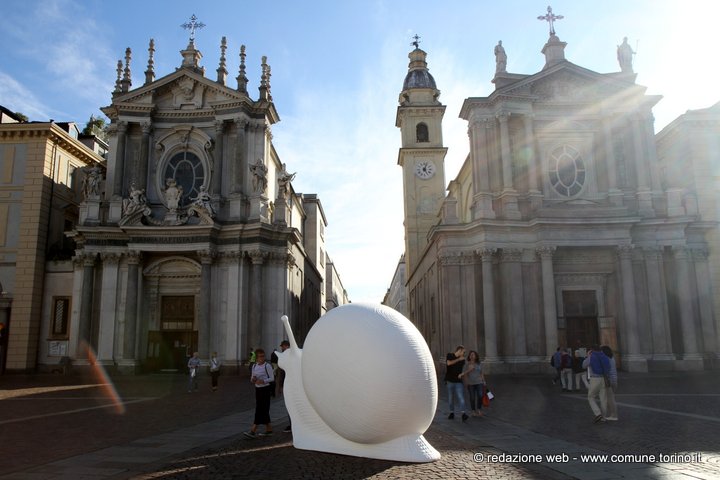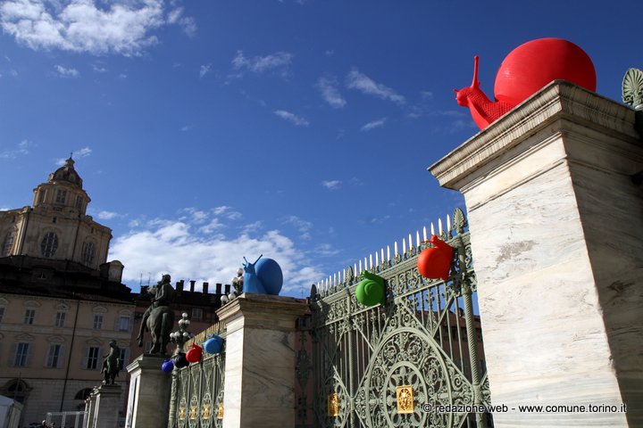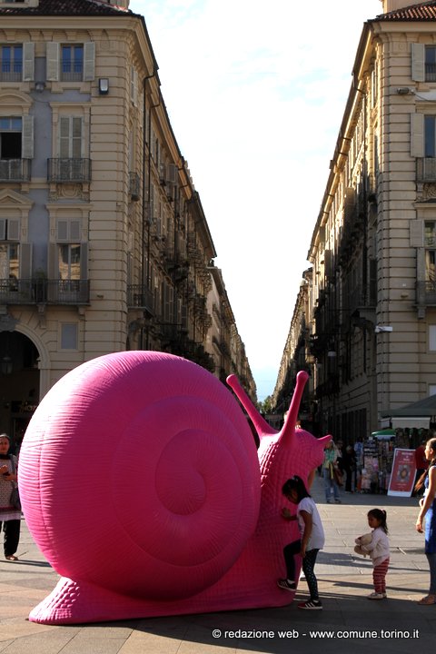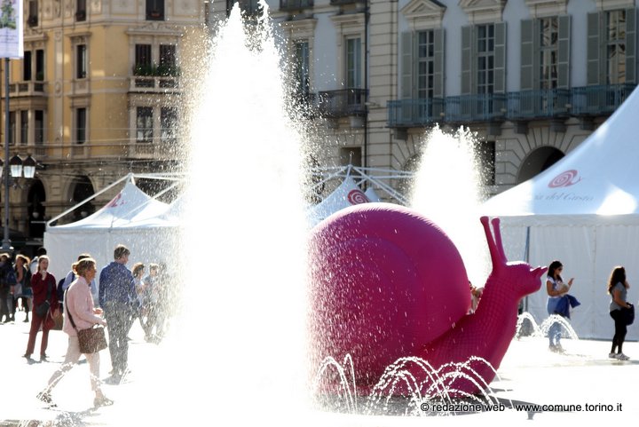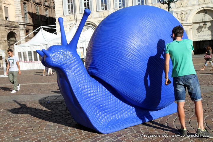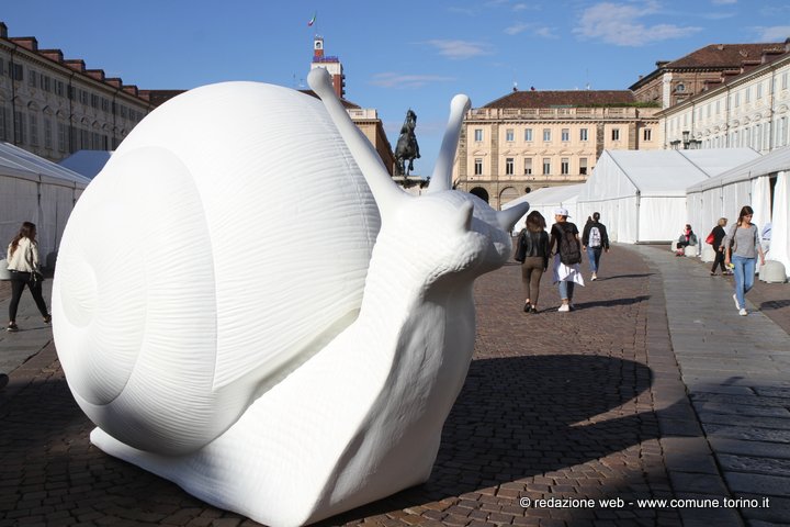 Le enormi chiocciole colorate presenti in questi giorni nelle principali vie e piazze del centro di Torino annunciano l’arrivo di Terra Madre – Salone del Gusto che inizierà Giovedì 22 settembre fino a lunedì 26 e che per la prima volta si svolgerà all’aperto, nei luoghi più belli e rinomati della città il cui cuore pulsante sarà il Parco del Valentino – www.salonedelgusto.com. La kermesse è organizzata da Slow Food il cui simbolo è proprio la chiocciola.