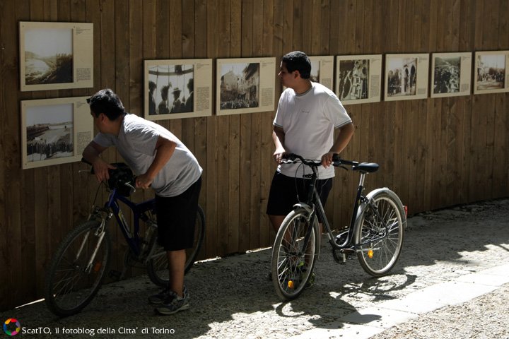 Dalla consultazione dell’Archivio sono emersi quattro temi di riflessione: “Esposizioni”, “Lavoro, sport e tempo libero”, “Lungo il fiume” e “Scorci di Torino”. “Lavoro, sport e tempo libero” accoglie i visitatori all’ingresso del ponte levatoio, negli spazi all’aperto lungo i portici della via maestra. Sagome e stendardi di uomini, donne e situazioni di vita ritratti in primo piano sono i protagonisti di questa sezione. “Esposizioni” raccoglie invece, presso la sala mostre del Borgo, i grandi album ricordo da donare ai personaggi illustri dell’epoca in occasione delle grandi manifestazioni del 1884, 1898 e del 1902. Infine, “Lungo il fiume” e “Scorci di Torino” trovano collocazione lungo la recinzione del cantiere dell’ex ristorante San Giorgio, che ben si presta a questa originale rifunzionalizzazione dello spazio in occasione della mostra.