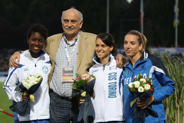 mondiale e lo facevano di fronte ad una tribuna importante con molti ospiti d’onore tra cui il Vice Presidente e Assessore allo Sport della Provincia e Presidente CONI Regionale Gianfranco Porqueddu, l’Assessore al Bilancio della Provincia di Torino Antonio Marco D’Acri, l’assessore allo sport della Città di Torino Stefano Gallo, il Pro Rettore dell’Università degli Studi di Torino Sergio Roda, il Direttore Amministrativo dell’Università degli Studi di Torino Loredana Segreto, la signora Giovanna Nebiolo, il Presidente FIDAL Franco Arese, il Segretario Generale FIDAL Renato Montabone e tanti altri nomi importantissimi dell’atletica nazionale e mondiale.