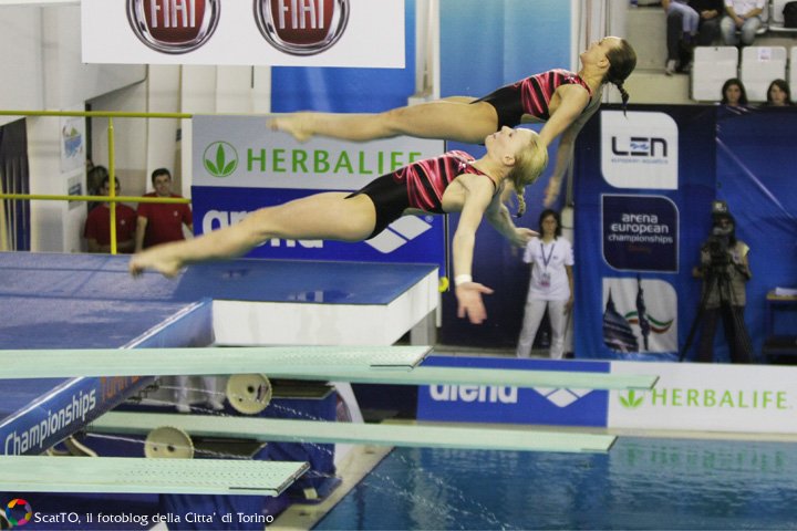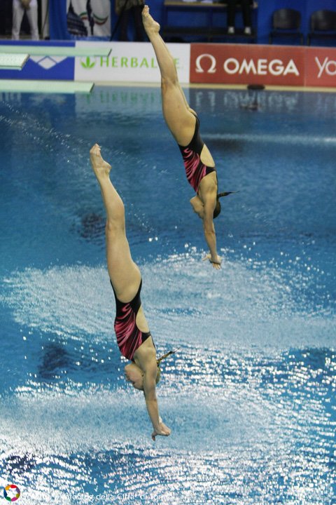 E’ stata una gara all’ultimo respiro: prime dopo gli obbligatori, la coppia azzurra – che si allena tre volte a settimana al Polo di Bolzano, guidata dal Cittì Cagnotto e dal tecnico federale Giuliana Aor, e che ha svolto uno stage nel mese scorso a Sydney insieme al campione del mondo Matthew Mitcham – ha perso la prima posizione a dispetto delle russe Bazhina/Philippova dopo il terzo salto, quel doppio e mezzo indietro che è il loro tallone d’achille, giudicato con 63 punti. Era il momento di tirare fuori tutte le energie, di scalare la classifica attraverso la sincronia e pulizia del gesto atletico che ne hanno caratterizzato le prestazioni internazionali negli ultimi tre anni. Così è stato. Prima un doppio e mezzo con un avvitamento carpiato da favola (78,30) e poi un doppio e mezzo ritornato carpiato all’ultimo turno (72,90) schianta le russe e le riporta in testa con 320,40 punti. Per le russe Bazhina/Philippova tre punti di distacco (317,13) e argento europeo; terze le tedesche Dieckow/Freitag con 295,50 punti.