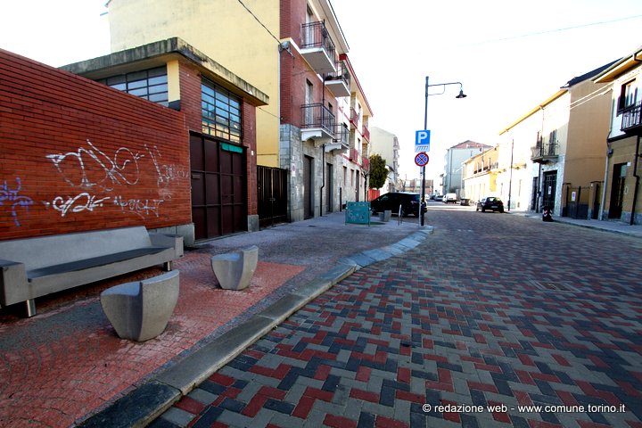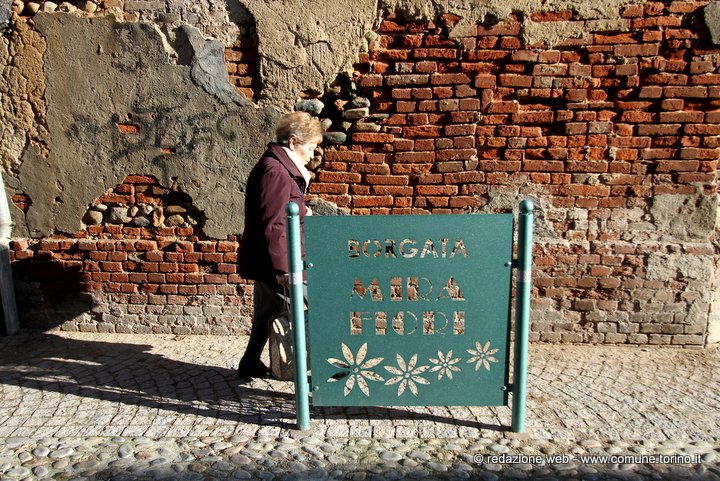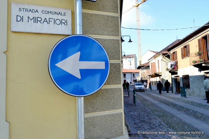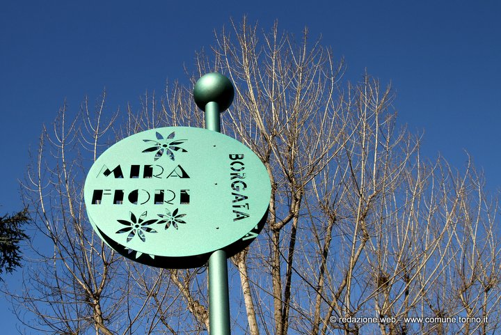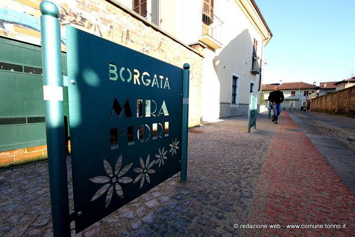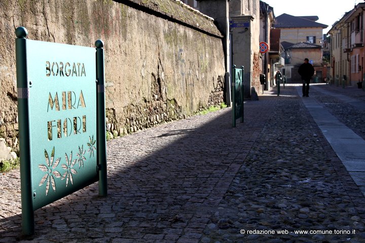 Il quartiere nacque in prossimità del castello costruito sulle rive del Sangone e donato nel 1585 dal Duca di Savoia Carlo Emanuele I alla futura sposa Caterina D’Asburgo, figlia del re di Spagna Filippo II. Alle origini spagnole di Caterina d’Asburgo si deve il nome di Miraflores (guarda i fiori), divenuto poi Mirafiori. Il castello, danneggiato sia nel 1640 durante la “guerra dei due cognati” sia nel 1706 nel corso dell’assedio di Torino da parte dei francesi, subì nel tempo un grave degrado e quello che ne rimaneva fu demolito alla fine dell’800. Nonostante il massiccio sviluppo edilizio degli anni ’70 l’antica borgata Mirafiori si è sempre distinta per le sue caratteristiche di borgo rurale secentesco, restando a Torino unica nel suo genere. L’Amministrazione comunale, attenta alle varie esigenze di quartiere, ha organizzato con la Circoscrizione 10 diversi momenti di confronto con gli abitanti, da cui è emersa l’importanza di lavori di riqualificazione che dessero un nuovo volto “contemporaneo” alla borgata conservandone la tradizione storica. Nello specifico si sono rifatte le pavimentazioni con materiale differente a seconda delle funzioni per offrire passaggi pedonali comodi, “ruere” in pietra di Luserna al centro delle carreggiate per il passaggio delle auto e acciottolato nelle altre parti nel rispetto dell’antica pavimentazione, si è completata la rete di raccolta delle acque con caditoie e pozzetti, si è realizzata l’illuminazione di tutti i percorsi per auto e pedoni curando con attenzione il tipo di apparecchio luminoso per non occupare la sede stradale e per adeguarsi alle strutture architettoniche di contorno, si è moderata la velocità delle auto grazie all’utilizzo di pietra con pezzature e colori diversi per distinguere percorsi pedonali e non, si sono utilizzati dissuasori lungo i marciapiedi per proteggere le entrate delle abitazioni ed il passaggio dei pedoni e transenne decorate con riferimenti alla storia del quartiere e si sono realizzate piccole aree di sosta arredate con panchine monoposto e fioriere. Gli ingressi sono segnalati con grandi paline illuminate, caratterizzate dal nome della borgata. La spesa per i lavori di restyling e riqualificazione effettuati è stata complessivamente di circa 605 mila euro.