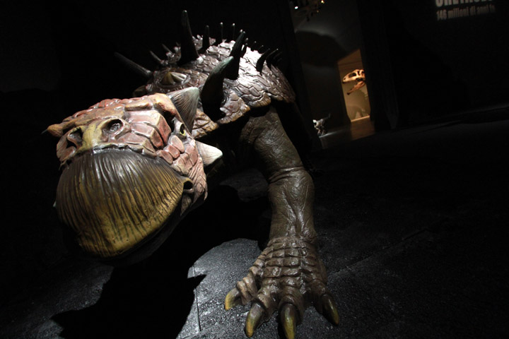 “Sono passati 170 anni da quando i dinosauri fecero il loro ingresso nella scienza, nel vocabolario e nelle fantasie tanto dei più dotti quanto della gente comune – ha dichiarato Daniele Ormezzano, paleontologo del Museo Regionale delle Scienze Naturali di Torino. La cena tenutasi nel Crystal Palace di Londra nel 1854, all’interno del modello di un Iguanodonte può segnare l’inizio delle ricostruzioni di questi animali. Da allora in un dialogo, che non sempre è stato paritetico e corretto, scienza e fantasia cooperano a dare un aspetto “vivente” a questi antichi dominatori della Terra. Scomparsi da 65 milioni di anni sono in tempi recenti protagonisti delle storie più incredibili e fantastiche. Sorta di novelli draghi che popolano i sogni di molte età”. Passando di stanza in stanza grandi e piccini verranno affascinati dall’imponenza dei grandi rettili fino ad arrivare allo scheletro del Giganotosaurus lungo 14 metri. Al fianco di ogni rettile i visitatori potranno acquisire, leggendo una scheda, le caratteristiche fisiche, le loro abitudini alimentari e le curiosità grazie alla sezione “lo sapevi che..”. Ad esempio, chi avrebbe detto che oltre la metà dei dinosauri esistiti si nutriva di vegetali e che gli erbivori dovevano mangiare più dei carnivori? Passeggiando tra le sale si potrà scoprire che i più grandi dinosauri del mondo sono vissuti in Argentina e che negli anni venti del Novecento un uovo di Oviraptor è stato venduto alla Colgate University di Hamilton, Stato di New York, per 5 mila dollari. “ Questa mostra sui dinosauri – ha detto Elena Fontanella, presidente della Fondazione Dnart – offrirà a tutti un viaggio coinvolgente e ai bambini poter realizzare l‘esperienza di uno scavo paleontologico simulata nel laboratorio didattico, facendoli avvicinare con passione allo studio delle scienze naturali”. In quest’”Area Scavo” i bambini si trasformeranno in piccoli paleontologi alla scoperta di fossili mai visti. Promossa e ideata dalla Fondazione DNart, curata dal Museo Regionale di Scienze Naturali di Torino, con il patrocinio di Regione Piemonte, Città di Torino e Provincia “la mostra – ha dichiarato Enzo Frammartino, in rappresentanza dell’assessore alla Cultura del Comune di Torino – è un vero progetto di divulgazione scientifica che è stato possibile realizzare grazie al “fare sistema”, ovvero alla capacità di costruire insieme un progetto in un illuminata collaborazione tra istituzioni e fondazione in un ottica didattico culturale accessibile a tutti”