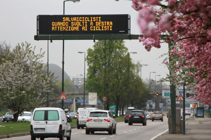E’ partita il 2 aprile anche a Torino la campagna “Salviamoiciclisti”, con la pubblicazione sui pannelli informativi elettronici (VMS) che 5T gestisce in giro per la città di messaggi che ricordano l’esigenza di prestare maggiore attenzione ai ciclisti, prevenendo il più possibile incidenti o problemi: negli ultimi 10 anni in Italia 2556 amanti delle 2 ruote hanno perso la vita in incidenti.