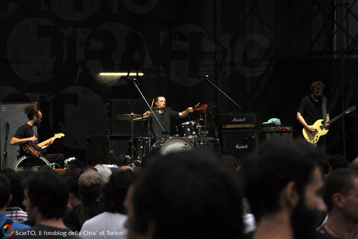 Salta il progessive di nuovo conio dei Verdena, al loro posto tanta acqua venuta giù dal cielo, l’incessante temporale ha visto costretti gli organizzatori ad interrompere il concerto, il pubblico si è rifugiato sotto i portici i portici di piazza San Carlo.